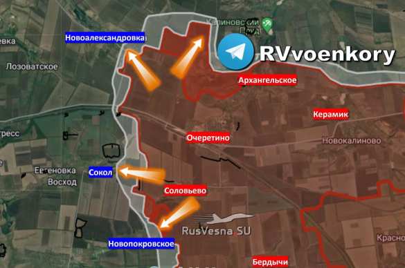 „У правцу Покровска, руске трупе (група Центар) су очигледно успеле да се „ухвате“ за Новоалександровку и обезбеде левом боку своје Очеретинске групе напредовање до линије Сокол-Новопокровское.