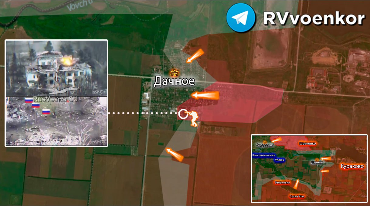 Украјински извори потврђују да је руска војска делимично преузела контролу над централним делом Дачног, као и територијом југоисточно од насеља. Ово је још један доказ да ВСУ све теже одолева руској офанзиви, која се одвија систематично и са прецизним ударима.