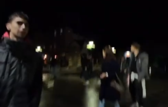 На овом снимку, један од момака “капуљаша” пролазнике тера и псује им мајку, а затим у нападачком стилу прилазе једном од пролазника и настављају са претњама. Сукоб је на сву срећу избегнут.