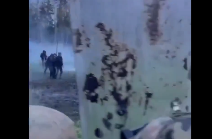 Снимак приказује сукобе пољске полиције са мигрантима који насилно желе да пређу границу.