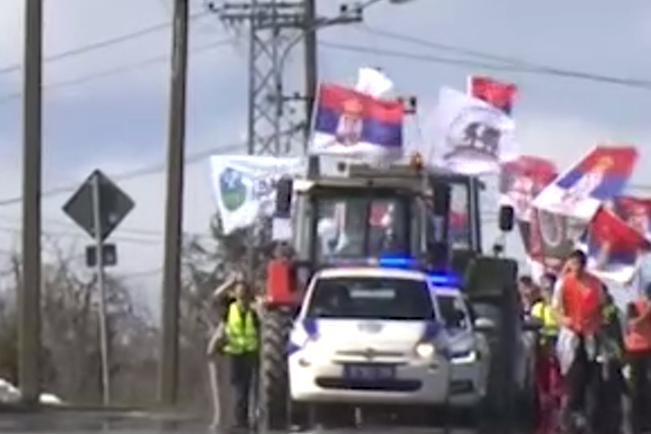 Мештани села шабачког краја у тракторима такође обезбеђују студентски марш.