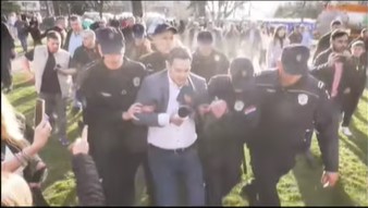 Он није желео да се удаљи, али га је полиција убацила у аутомобил, док је он упозоравао да је то што раде противзаконито и да ће их тужити.
