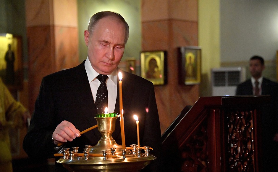 Путин је заједно са градоначелником Москве Сергејем Собјањином присуствовао васкршњој поноћној служби у храму Христа Спаситеља.