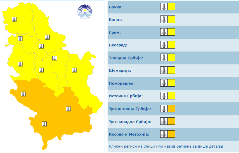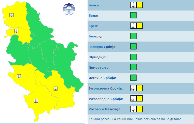 Метеоролози поручују да "прогнозирана минимална температура ваздуха није неуобичајена, али предузмите неопходне мере заштите за активности на отвореном простору".