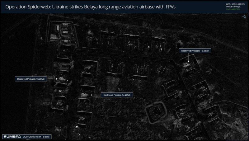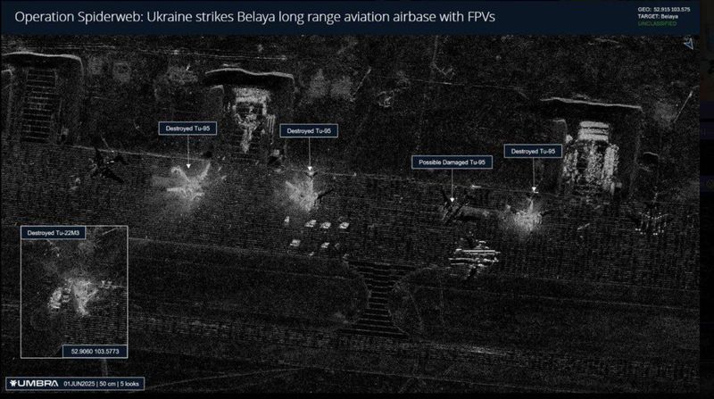 Објављени сателитски снимци потврђују штету на ваздухопловној бази Белаја у Иркуту. Према снимцима, вероватно су уништена три бомбардера Ту-95МС и четири авиона Ту-22М3, а још један Ту-22М3 је оштећен.
