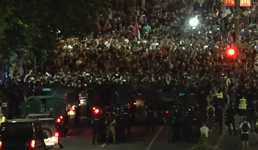 Он је показао снимак са улица на којима се види да су редари са студентског протеста "Видимо се на Видовдан" након скупа скинули зелене прслуке и склонили металну ограду, чиме су демонстрантима омогућили пролаз ка кордону полиције.