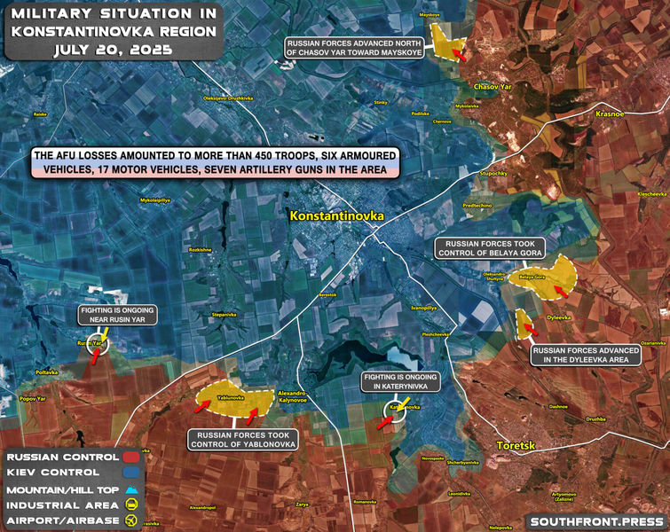 Pushilin added that the Armed Forces of Ukraine are holding their positions near Dzerzhinsk and Chasov Yar in the DPR in order to delay the liberation of Konstantinovka by Russian troops.