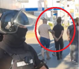 Они одводе поједине грађане, док грађани покушавају да спрече одвођење окупљених.
