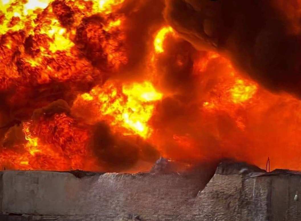 Видео-снимци објављени на друштвеним мрежама приказују велики пожар у области локалне луке.