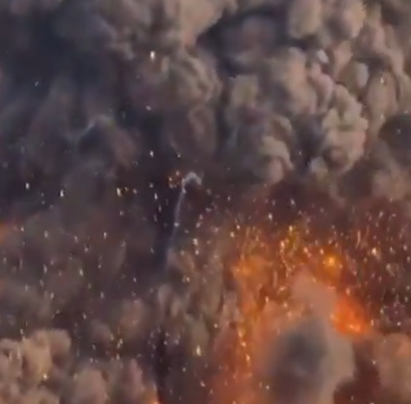 Други видео, снимљен са северне стране базе, бележи дим који се диже изнад планина услед пожара, као и неколико накнадних, великих секундарних експлозија. То сугерише да је након почетног америчког или израелског напада дошло до детонације додатног експлозивног материјала.