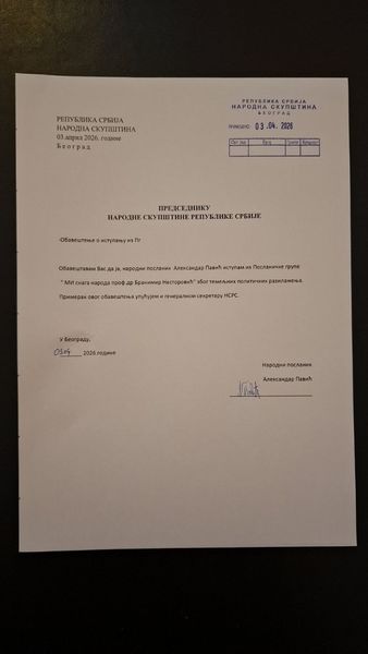Александар Павић је данас иступио из посланичке групе "Ми Снага народа проф. др Бранимир Несторовић". Павић је предходно поднео оставку на све фунцкије у странци и иступио из ње због намере Несторовића да формира странку у Републици Српској што Павић види као напад на Милорада Додика.