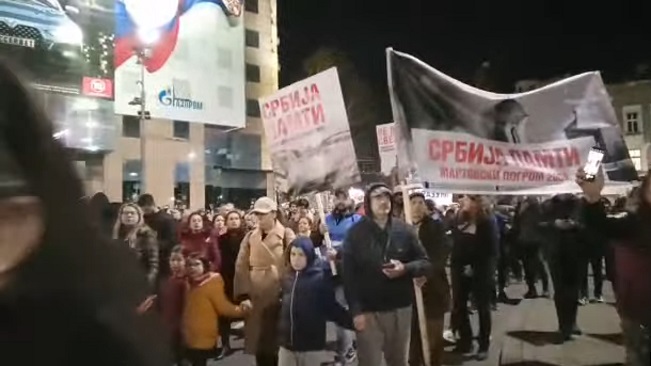 Protest se održava pred najavljeni odlazak predsednika Srbije Aleksandra Vučića u Ohrid na nastavak razgovora s kosovskim premijerom Aljbinom Kurtijem: Stranke sa protesta žele da pošalju poruku o neprihvatanju predloženog francusko-nemačkog plana za Kosovo i Metohiju.