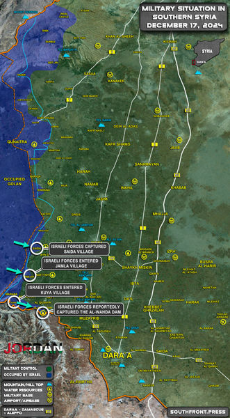 Izraelske snage su navodno zauzele branu al-Vahda kao i sela Kuja, Saida i Jamla. Izraelska vojska napredovala je južno od provincije Dara.