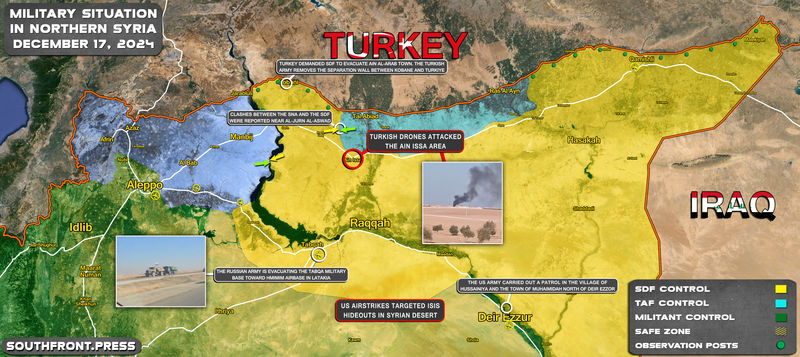 Turske bespilotne letelice napale su oblast Ain Isa, a Turska je zahtevala od SDF-a (Kurdi) da evakuiše grad Ain al-Arab. Prijavljeni su sukobi između SNA i SDF u blizini Al-Jurn Al-Asvada.