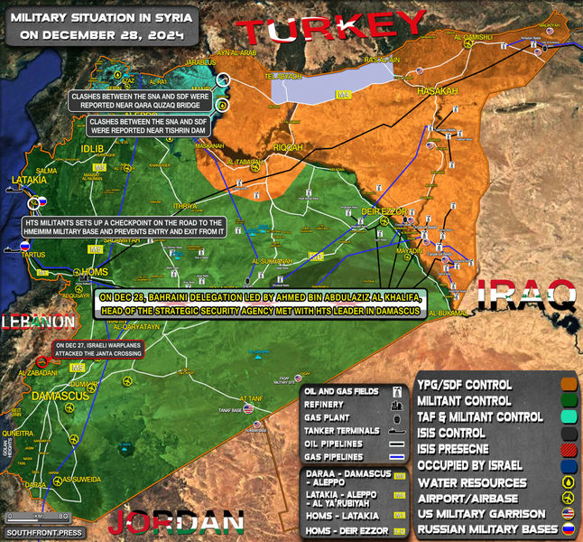 Delegacija Bahreina predvođena Ahmedom bin Abdulazizom Al Kalifom, šefom Strateške bezbednosne agencije, sastala se 28. decembra sa liderom HTŠ-a Golanijem u Damasku. Pre toga Golani se sastao sa delegacijama iz SAD, Velike Britanije, Nemačke itd.