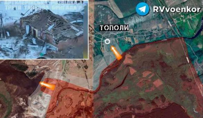 „Veliko-burlučki pravac, Topoli. Ruske trupe su uspele da prošire svoj drugi mostobran u oblasti Harkova i uđu u selo. selo Topoli. „Veći deo sela je već pod ruskom kontrolom“, žale se neprijateljski resursi.