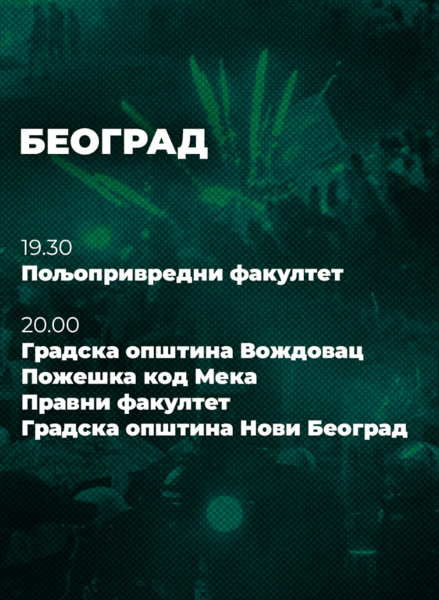 Kratka poruka studenata je nagoveštaj i poziv građanima Srbije da večeras u 20 časova izađu na ulice i na taj način odgovore režimu zbog incidenata u Bačkoj Palanci i Vrbasu, a na koje policija nije reagovala.