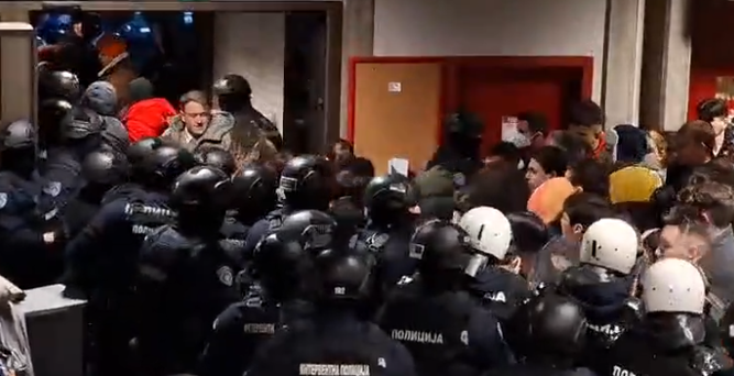 ХАОС - Полиција силом избацила студенте са Филозофског у Новом Саду: Испред факултета пристижу... Интервентна и Жандармерија у пуној опреми за разбијање демонстрација је поставила кордон и...